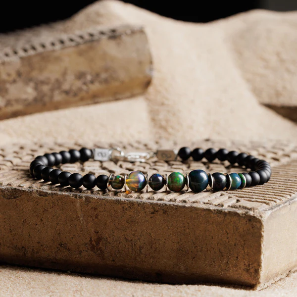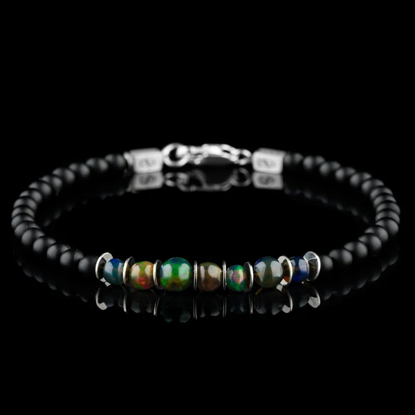 Ethiopian Black Opal – Black Agate Bracelet XII (3-7mm)